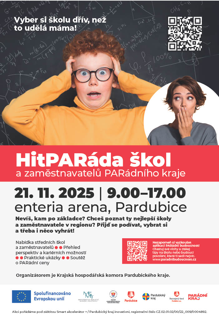 V pátek 21. listopadu 2025 proběhl v Enteria aréně v Pardubicích další ročník Hitparády středních škol a zaměstnavatelů Pardubického kraje. Akce opět propojila vzdělávání s praxí a nabídla žákům, rodičům i pedagogům jedinečnou příležitost získat přehled o možnostech studia a uplatnění v regionu.