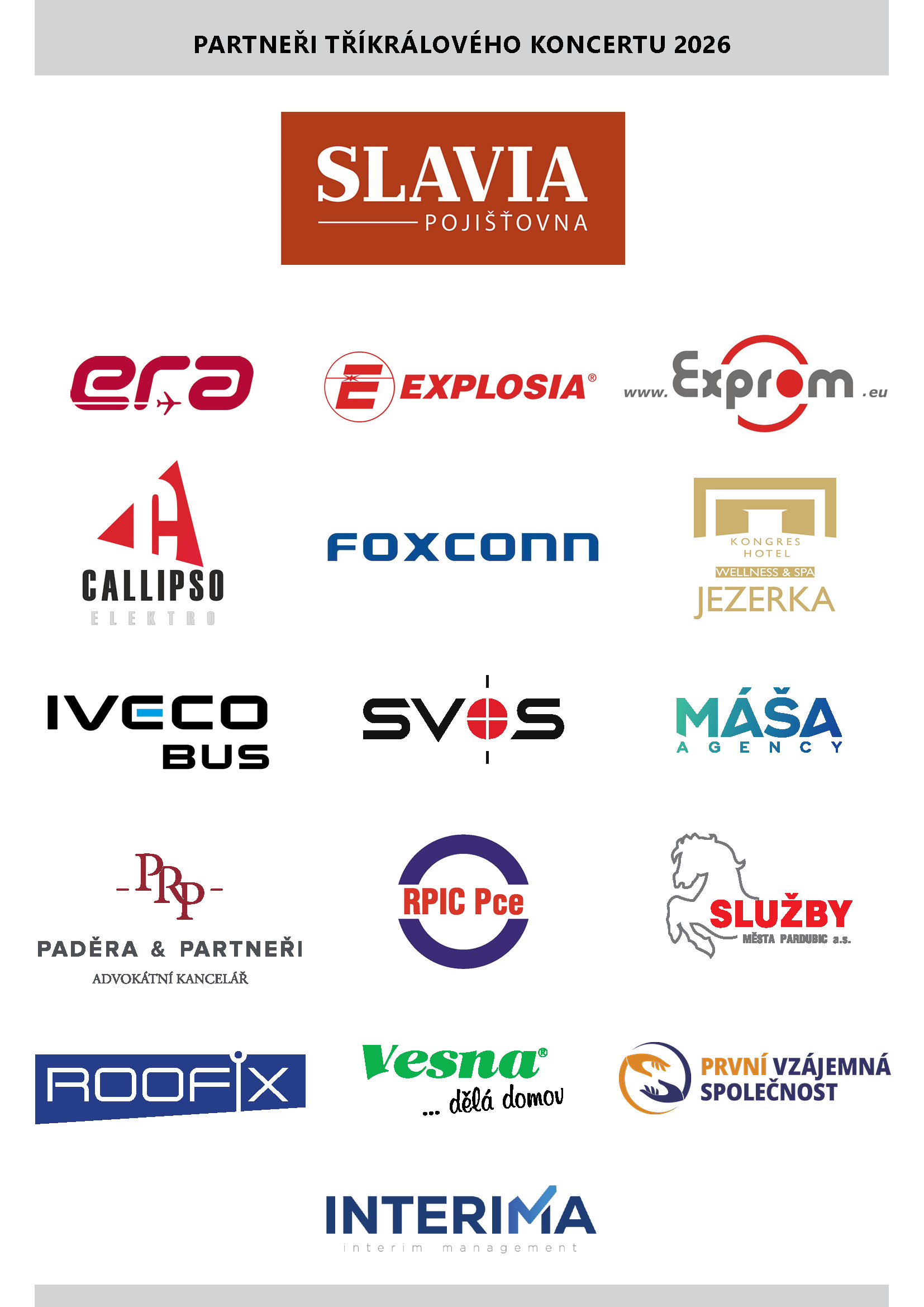 Děkujeme všem účinkujícím a návštěvníkům za vytvoření výjimečné atmosféry večera. Zvláštní poděkování patří především partnerům koncertu, kteří svou podporou umožnili uskutečnění 26. ročníku Tříkrálového koncertu a přispěli k zachování této dlouholeté kulturní tradice. Velmi si jejich podpory vážíme.